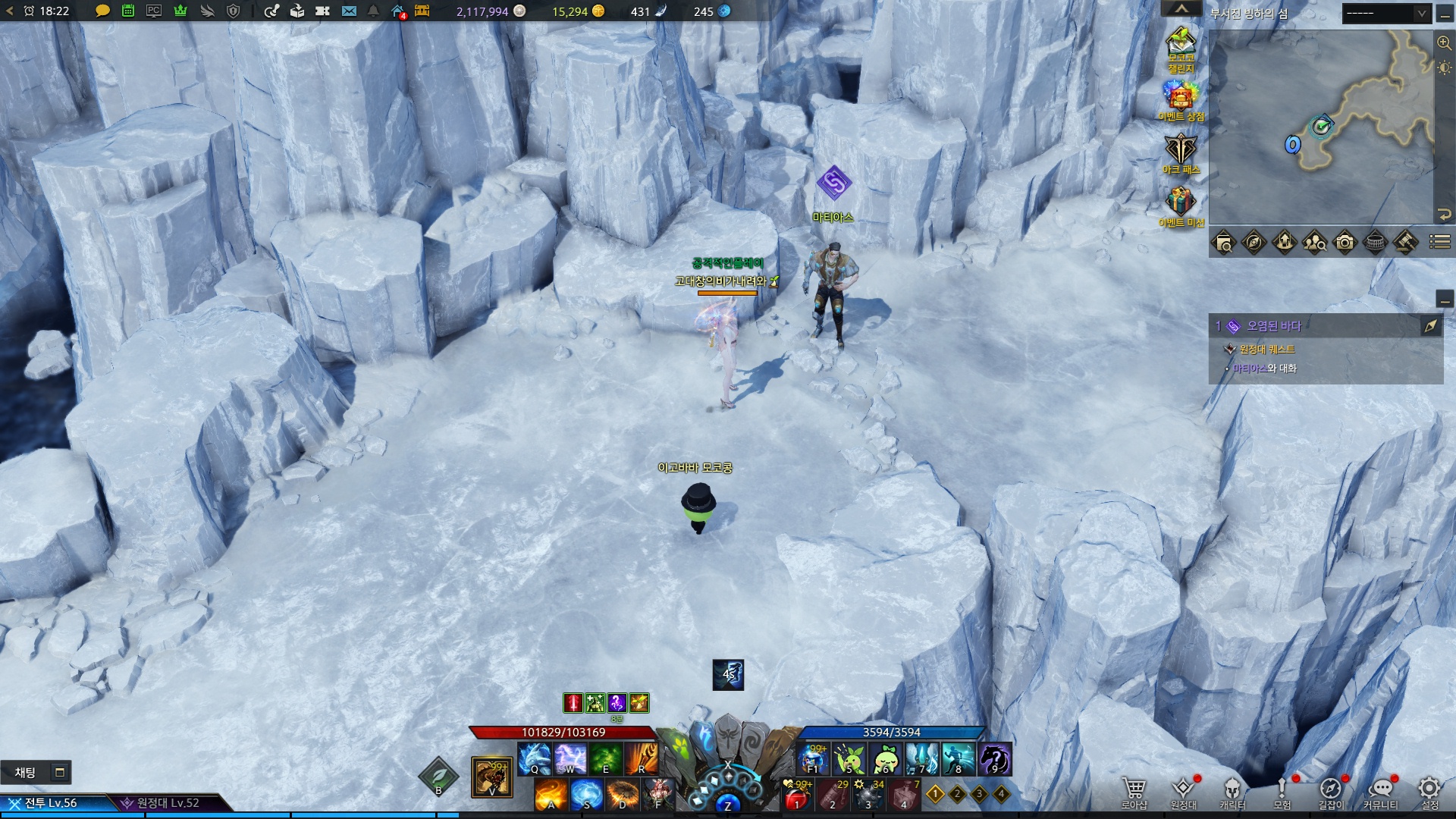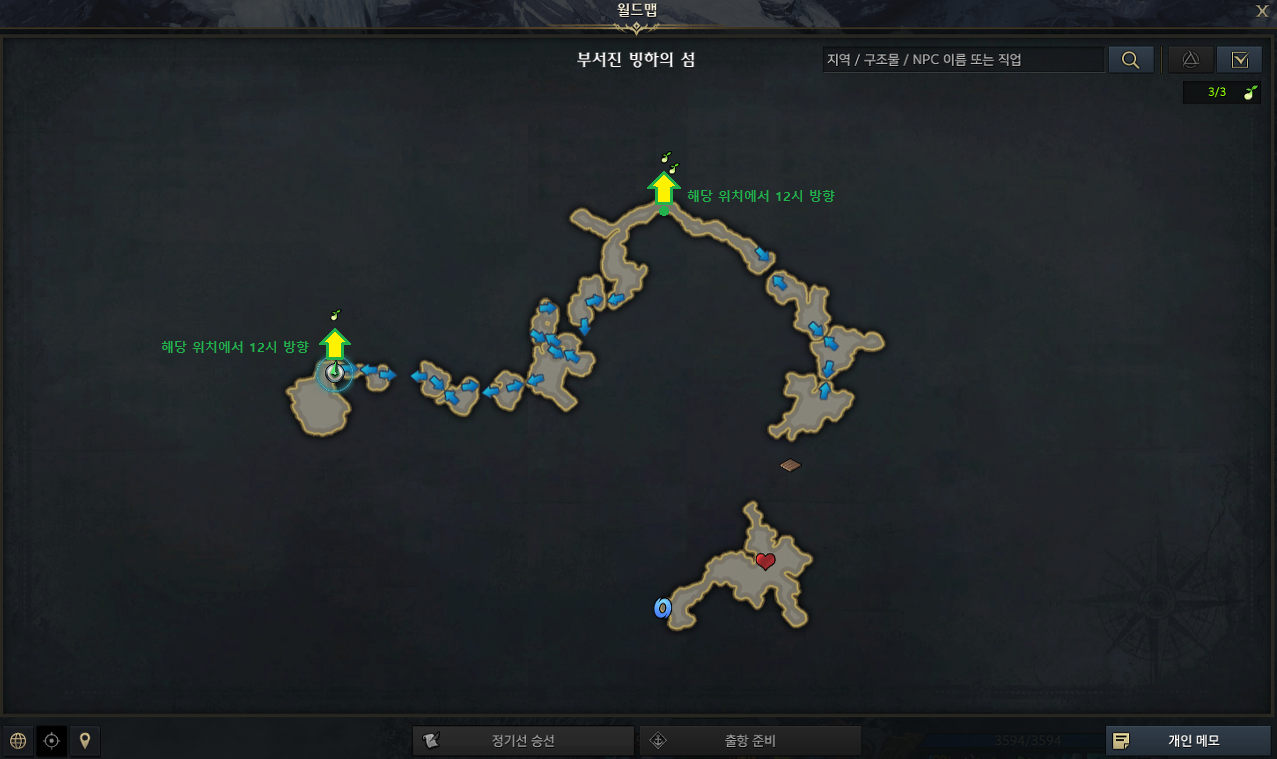 부서진 빙하의 섬은 선행 퀘스트를 받고 와야 합니다.