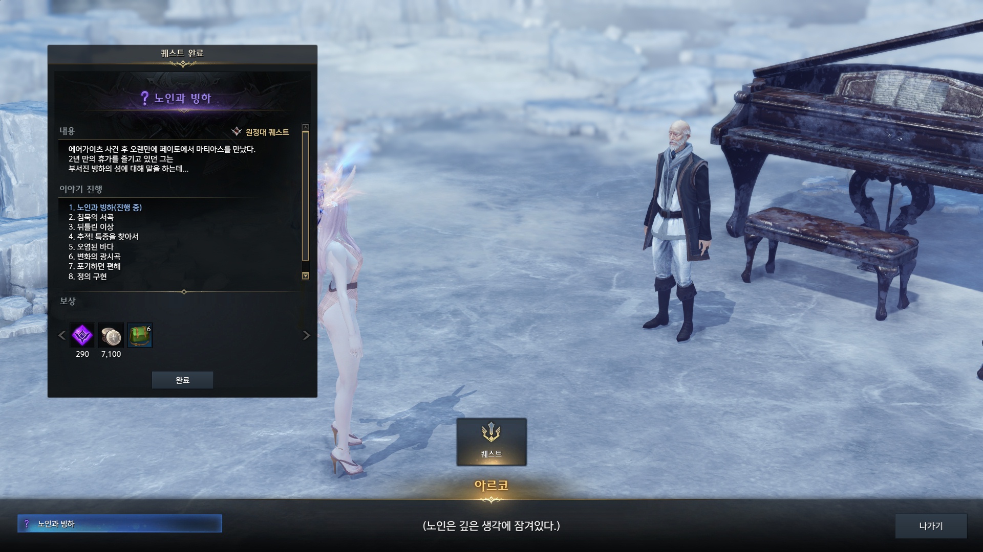 연주회를 듣고 퀘스트는 끝이 납니다.