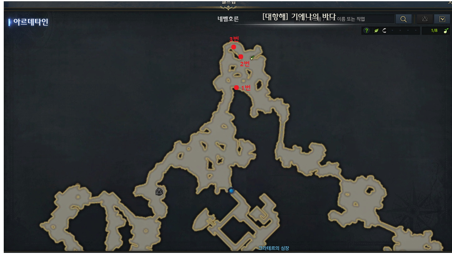 총 3번 흔적을 찾아야 하니 위에 미니맵 위치 확인하세요.