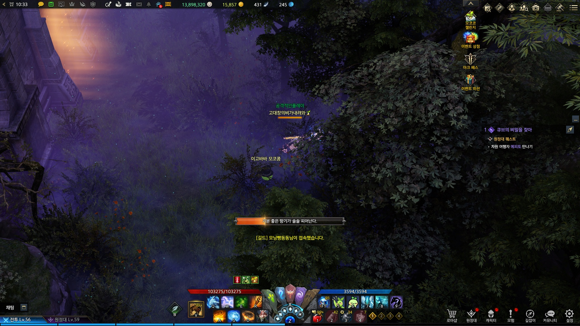 섬을 나가서 바로 ALT+Q 를 누르고 큐브에 갔다옵니다.